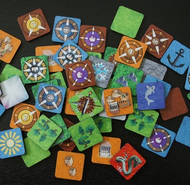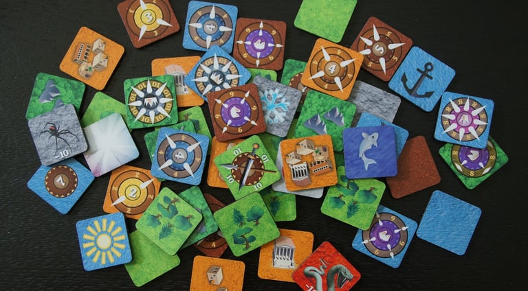 Die Hauptbausteine sind vielseitige und multifunktionale Plättchen, die sorgfältig entworfen wurden, um eine Vielzahl von Spielen zu spielen. Bedruckt mit universellen Symbolen, Farbren und Zahlen, sind diese Holz- oder bedruckten Spielsteine für Spieler mit unterschiedlichem kulurellen Hintergrund leicht zu erkennen.