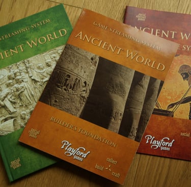 Die Bücher des Ancient World Streaming System sind auf Deutsch (Builder's Foundation) und Englisch (Builder's Foundation und Collector) erhältlich. Das Builder's Foundation-Buch enthält mehr als 20 Spiele, während das Collector-Buch mehr als 40 enthält, mit vielen zusätzlichen Spielen in den Kategorien „Strategien“ und „Brain Burner“.