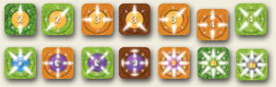 Platziere die Länder zufällig auf offenen Feldern des Brettes. Die Spieler setzen abwechselnd eine eigene Scheibe auf ein offenes Land.