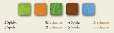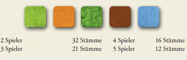 Jeder Spieler erhält ein Volk in seiner Spielerfarbe. Alle Plättchen werden zufällig auf offene Felder auf dem Spielbrett plaziert.