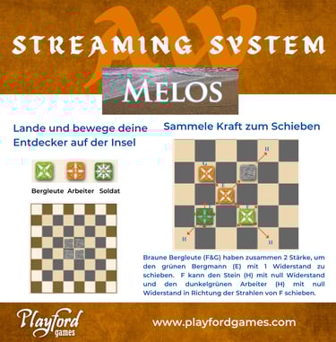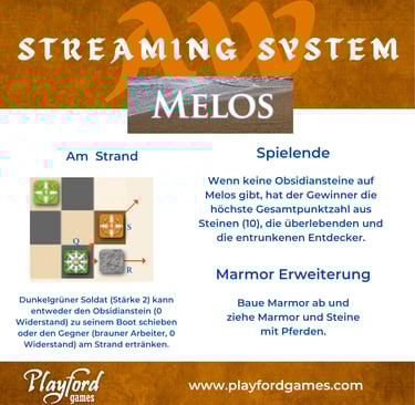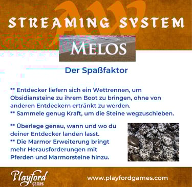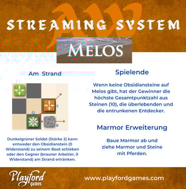 Wenn auf Melos keine Felsen liegen, hat der Gewinner mindestens einen Entdecker im Spiel und hat die meisten Steine ins Meer geschoben. Beim Gleichstand hat der Gewinner die höchste Summe der Zahlen auf seinen Entdeckerplättchen im Spiel, plus Endeckter des Gegners, die er von der Insel geschoben hat.