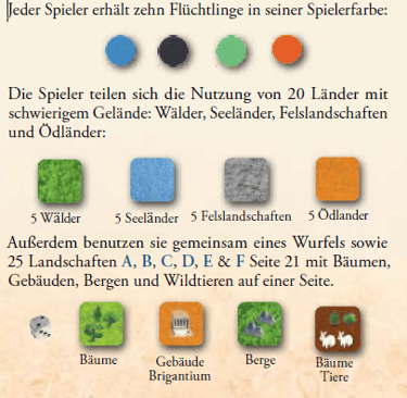 Während deine Flüchtlinge durch die Länder reisen. Würfle weiter, solange du genug würfelst, um entweder deine Flüchtlinge zu bewegen oder ein Landplättchen neben einem deiner Flüchtlinge umzudrehen. Bewege dich vorwärts oder besetze Länder vor deinen Gegnern, um sie zu blockieren. Je mehr Baum- oder Bergländer offen liegen, desto schwieriger wird es, sich zu bewegen.