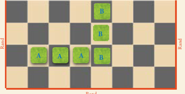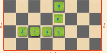 Ab dienem zweiten Zug müssen deine Jäger B neben aber nicht diagonal zu mindestens einem deiner Jäger A, die bereits auf dem Brett sind, sein.