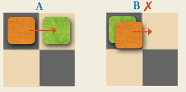 Aktion B Bewege einem Block auf gleicher Ebene: Bewegen eine eigene Block auf einen beliebigen orthogonal benachbarten Block.