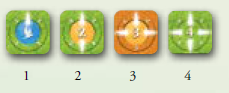 Players share the use of 16 movement tiles in green & brown (2 each)