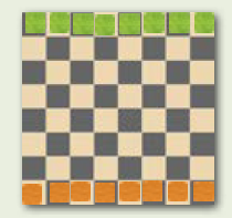 The winner is the first to score six or block their opponent’s soldiers so they are unable to move on their turn.